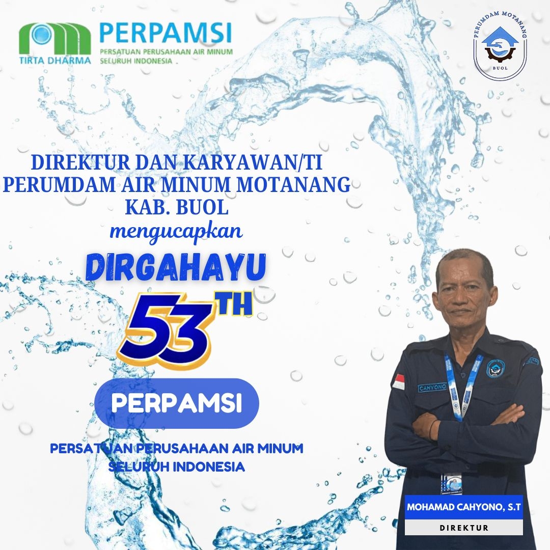 Selamat ulang tahun yang ke-53 tahun. Semoga Persatuan Perusahaan Air Minum Seluruh Indonesia terus berkembang dan berperan aktif dalam meningkatkan kualitas dan aksesibilitas air bersih di seluruh penjuru tanah air.